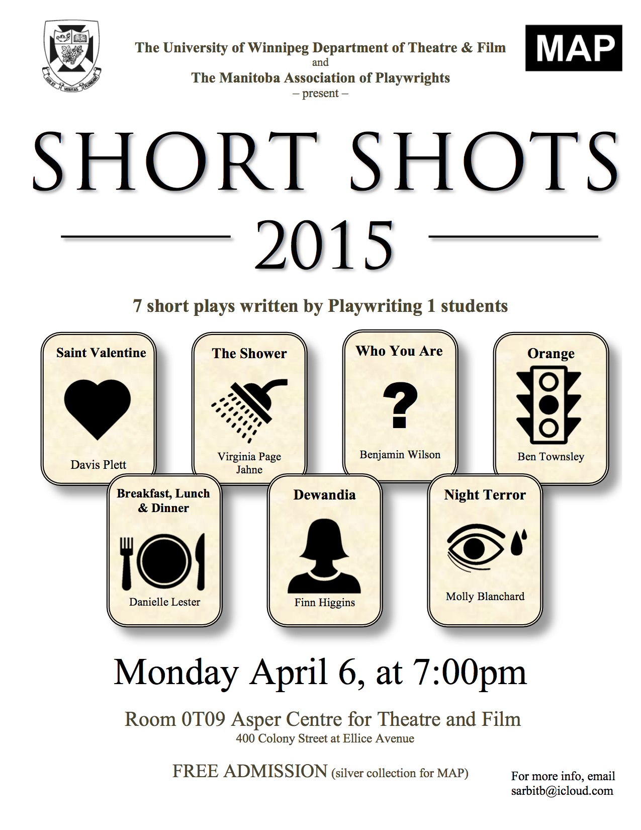 7 short plays by students in the University of Winnipeg's "Playwriting 1" course